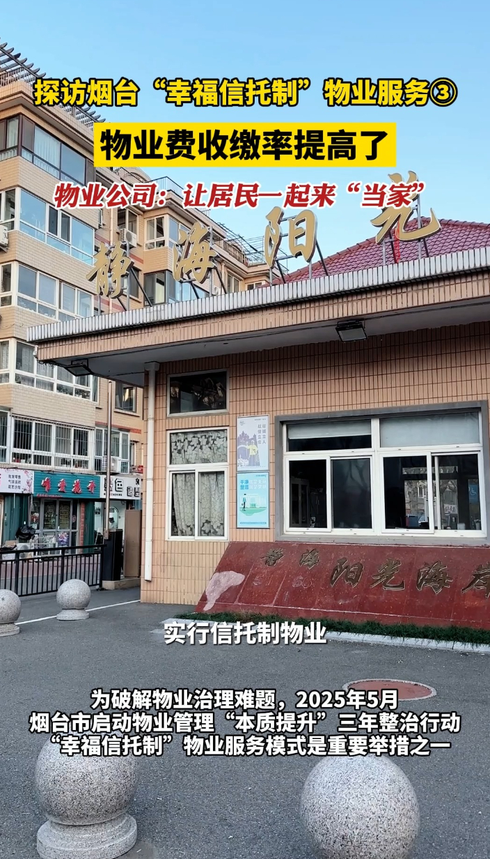烟台幸福信托制物业探访③让居民来“当家”,物业费收缴率提高了齐鲁晚报·齐鲁壹点客户端 2025-11-28原创11月26日下午,“信托赋能幸福烟台·创新共建美好家园”烟台市幸福信托制实践成果媒体探访行,来到开发区静海阳光海岸小区,物业公司负责人表示:让居民一起来“当家”,物业费收缴率提高了。(齐鲁晚报·齐鲁壹点 杜晓丹)
