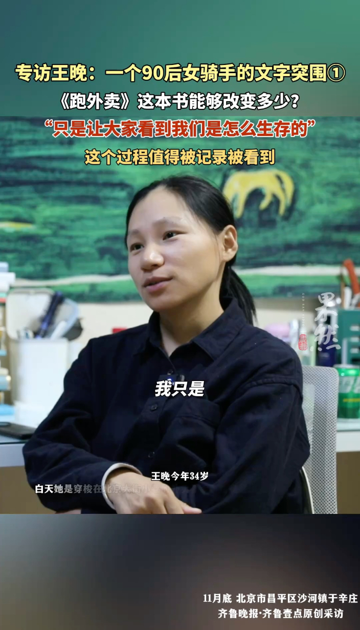 果然视频|王晚谈《跑外卖》:记录底层女性如何生存,希望被看见齐鲁晚报·齐鲁壹点客户端 2025-11-29原创11月底,北京气温跌到零下,齐鲁晚报·齐鲁壹点记者在昌平区沙河镇于辛庄见到了王晚。今年她出版了《跑外卖:一个女骑手的世界》,这本书能够改变多少,她不知道。“我只是让大家看到我们是怎么生存的,怎么看待这个世界的。我们与外界的接触,也许只是取餐的一刹那,但大家看不到我们的生活,我觉得它是值得被记录被看到的。”(齐鲁晚报·齐鲁壹点 记者 李静 路董萌)