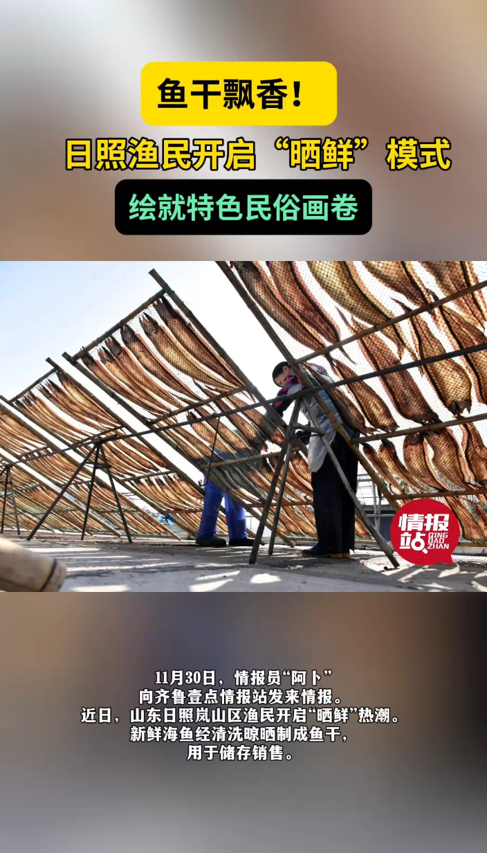 情报站|鱼干飘香!日照渔民开启“晒鲜”模式,绘就特色民俗画卷齐鲁壹点 | 2025-11-30 大众报业·齐鲁壹点 微信扫码扫码下载客户端11月30日,情报员“阿卜”向齐鲁壹点情报站发来情报。近日,山东日照岚山区渔民开启“晒鲜”热潮。新鲜海鱼经清洗晾晒制成鱼干,用于储存销售。大街小巷弥漫着大海的鲜香,众多晒鱼场交织,勾勒出沿海地区独具特色的民俗烟火画卷。