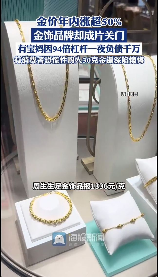主播说丨金价年内涨超50%,金饰品牌却成片关门,有宝妈因94倍杠杆一夜负债千万