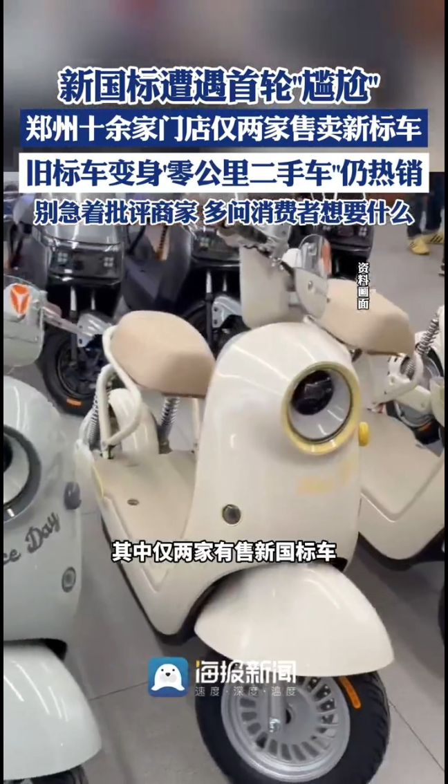最近,记者实探郑州的十多家电动车门店,其中仅两家有售新国标车,不少旧国标新车,竟摇身一变成“零公里二手车”,还照样热销。更有意思的是,就算有新国标的门店,也把新车摆在不起眼的角落,门口和显眼位置全是旧国标车。