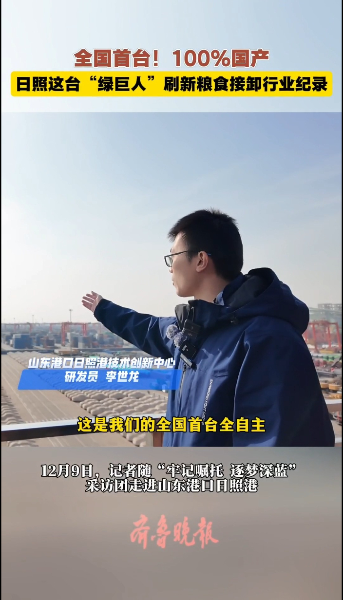 牢记嘱托 逐梦深蓝|100%国产化!日照这台“绿巨人”刷新粮食接卸行业纪录 2025-12-10 原创齐鲁晚报·齐鲁壹点客户端 微信扫码扫码下载客户端(齐鲁晚报·齐鲁壹点记者 范佳)12月9日,记者随“牢记嘱托 逐梦深蓝”采访团走进山东港口日照港,这里,全国首台全自主自动化粮食高效连续卸船机打破了国外长达30年的技术垄断,实现了核心部件100%国产化。