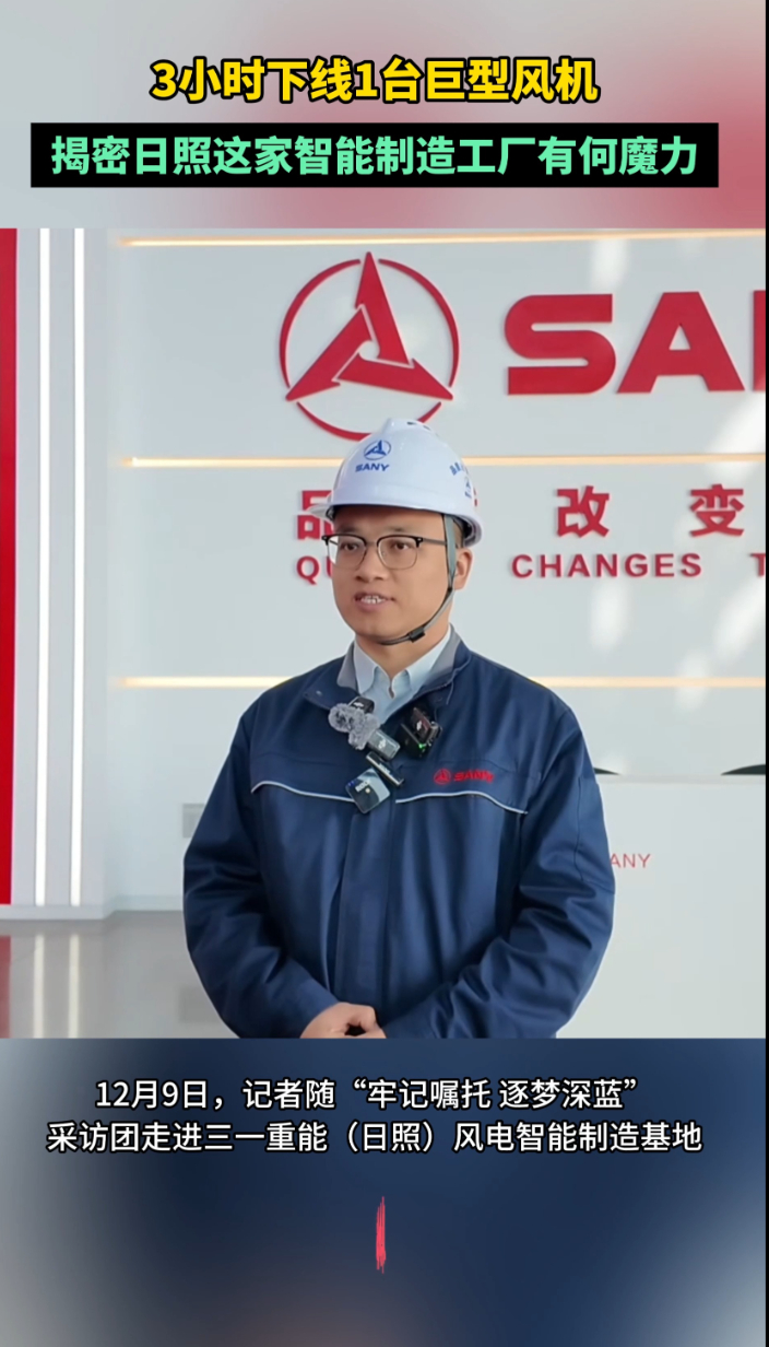 牢记嘱托 逐梦深蓝|3小时下线1台巨型风机,日照这家智能工厂有何魔力齐鲁壹点 | 2025-12-10 原创齐鲁晚报·齐鲁壹点客户端 微信扫码扫码下载客户端(齐鲁晚报·齐鲁壹点记者 范佳 实习生 李敏)12月9日,记者随“牢记嘱托 逐梦深蓝”采访团走进三一重能(日照)风电智能制造基地。3小时下线1台巨型风机,日照这家智能工厂有何魔力?