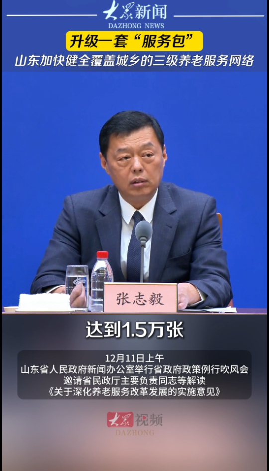 升级一套“服务包”,山东加快健全覆盖城乡的三级养老服务网络 2025-12-11 原创大众新闻 微信扫码扫码下载客户端12月11日上午,山东省人民政府新闻办公室举行省政府政策例行吹风会,邀请省民政厅主要负责同志等解读《关于深化养老服务改革发展的实施意见》。(大众新闻记者 申家鑫 程文琪 策划 马玉峰 陈巨慧)