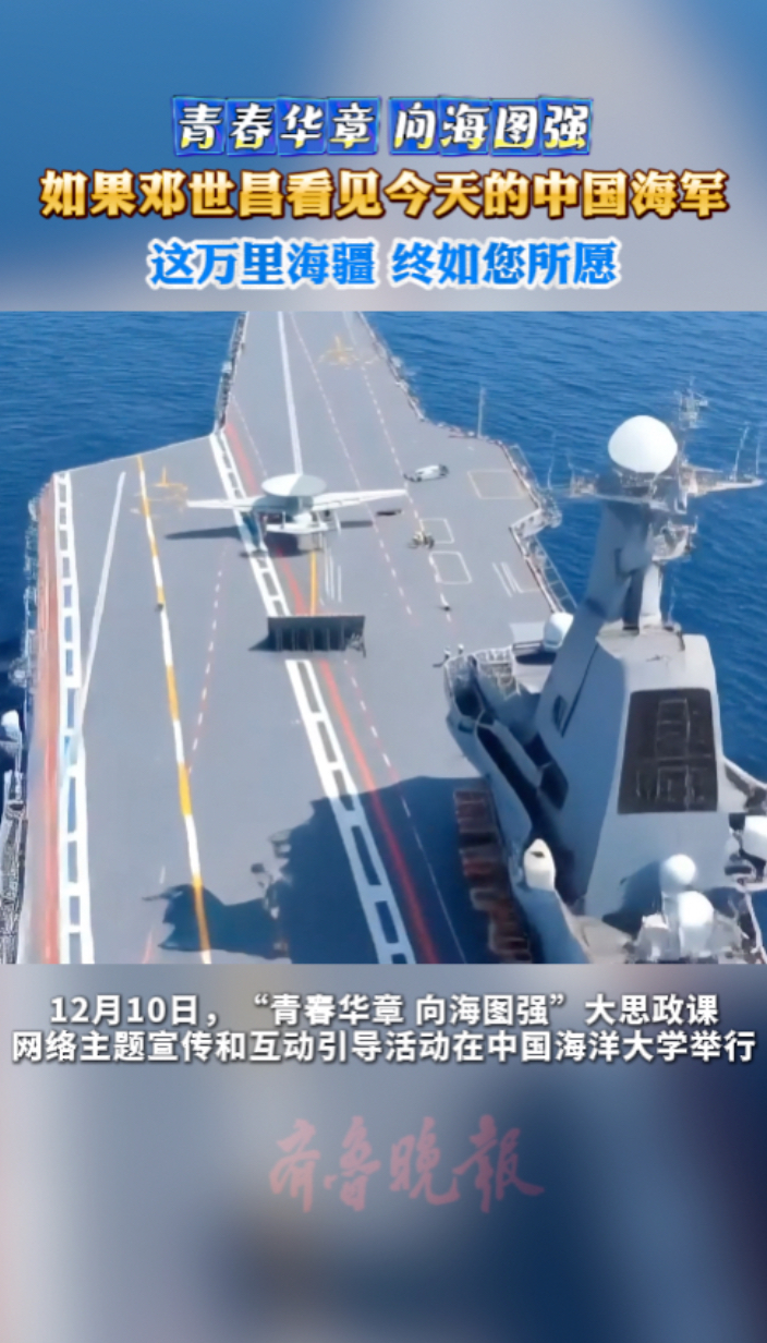 青春华章 向海图强|如果邓世昌看见今天的中国海军齐鲁晚报·齐鲁壹点客户端 12-12原创12月10日,“青春华章 向海图强”大思政课网络主题宣传和互动引导活动在中国海洋大学举行。电磁弹射划破长空,舰载机列阵如翼。这位从黄海硝烟中走来的英雄,此刻定会热泪盈眶。百年强军梦,今朝已成真。