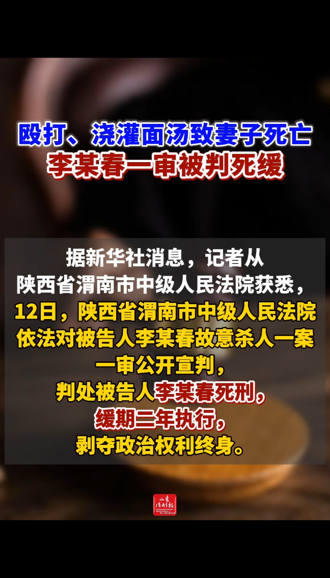 殴打、浇灌面汤致妻子死亡,李某春一审被判死缓