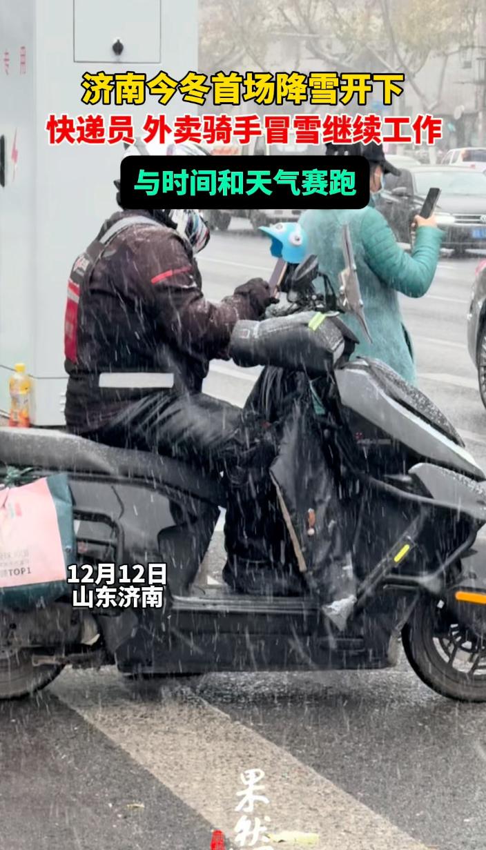果然视频|风雪无阻,外卖、快递小哥冒雪继续工作齐鲁晚报·齐鲁壹点客户端 12-12原创12月12日,济南迎来今年冬天的首场降雪,不少快递员、外卖骑手冒雪继续工作,与时间和天气赛跑。有外卖员表示,下雪天单量与以往相比相差不大,目前外卖员大多正常在岗,根据雪势,或将有所减少。(齐鲁晚报·齐鲁壹点记者 管悦)