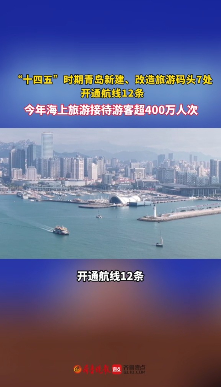 12月11日,青岛市政府新闻办举行“高质量完成‘十四五’规划”系列主题新闻发布会第五场,介绍教育、就业、文旅等民生福祉方面的工作情况。“十四五”期间,新建、改造旅游码头7处,开通航线12条,实现胶州湾东、西、北三岸全覆盖,“一程多站”式海上旅游大格局基本成型。“海上看青岛”今年接待游客超400万人次创新高。灵山岛、小管岛旅游取得突破,首条“跳岛游”航线填补历史空白。