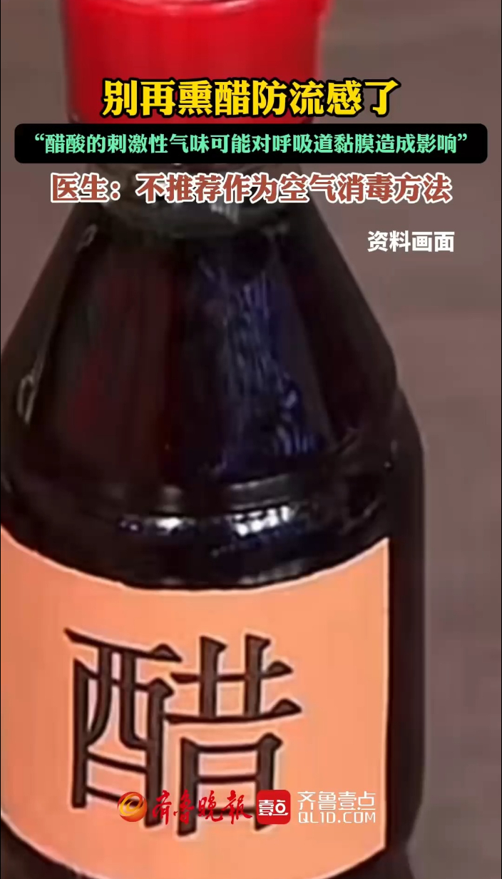 别再熏醋防流感啦!医生:醋酸的刺激性气味或损伤呼吸道黏膜齐鲁晚报·齐鲁壹点客户端 12-12原创冬季是流行性感冒的高发季节,许多市民有着“熏醋可以防感冒”的认知。12月2日,青岛心血管病医院医生介绍,食醋中的醋酸浓度根本达不到杀灭流感病毒的有效浓度。相反,醋酸的刺激性气味可能对呼吸道黏膜造成刺激和损伤,因此不推荐作为空气消毒方法。(齐鲁晚报·齐鲁壹点 刁明杰)