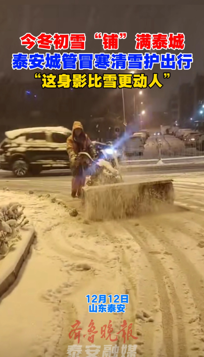 果然视频|初雪“铺”满泰城,泰安城管冒寒清雪护出行大众报业·齐鲁壹点 12-1312月12日下午,泰城迎来今冬初雪,雪花纷飞间全城银装素裹,部分路段积雪影响通行。泰安城管迅速响应,工作人员冒严寒全力清理道路积雪,以高效行动保障市民出行安全,他们忙碌的身影成为雪中最温暖的风景线。