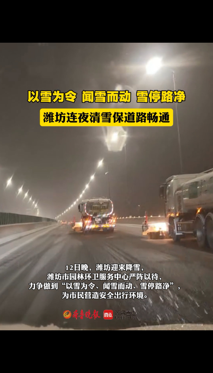果然视频|以雪为令,潍坊连夜清雪保道路畅通齐鲁晚报·齐鲁壹点客户端 昨天09:23原创12日晚,潍坊迎来降雪,潍坊市园林环卫服务中心严阵以待,力争做到“以雪为令、闻雪而动、雪停路净”,为市民营造安全出行环境。齐鲁晚报·齐鲁壹点 马小杰