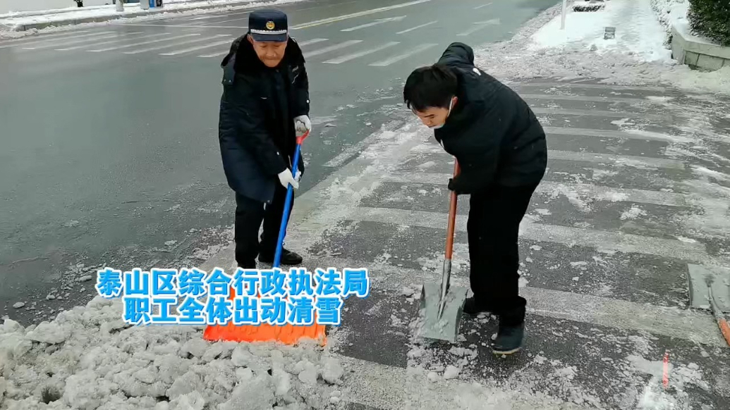 果然视频丨泰山区综合行政执法局职工全体出动清雪齐鲁晚报·齐鲁壹点客户端 12-13原创齐鲁晚报•齐鲁壹点 李增浩 12月12日下午,一场暴雪突袭泰城,一夜之间,城区银装素裹,却也给道路交通安全和群众出行带来严峻考验。为保障早高峰市民出行顺畅,12月13日清晨,泰山区综合行政执法局全体干部职工便闻令而动,迅速集结,按照预先分组,奔赴区管道路风险路段、坡道等重点点位,打响了一场全员参与的除雪保畅攻坚战。