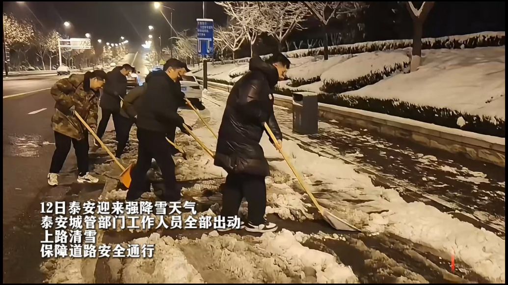 果然视频丨泰安城管部门工作人员全部出动,深夜清理道路积雪