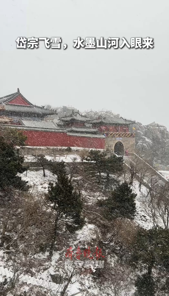 果然视频|岱宗飞雪,水墨山河入眼来齐鲁晚报·齐鲁壹点客户端 12-13原创摄影 袁训申 剪辑 徐慧 12月13日上午,岱顶仍在飘雪,白雪覆于山石、草木与红墙之上,朦胧的雪雾弱化了锐利的线条,红墙黛瓦的色彩对比又像水墨画里的设色技法,山石林木的层次错落也契合水墨画的留白与疏密构图,整体氤氲着中式水墨的淡雅和悠远感。