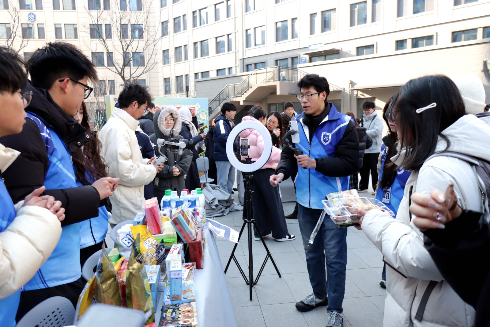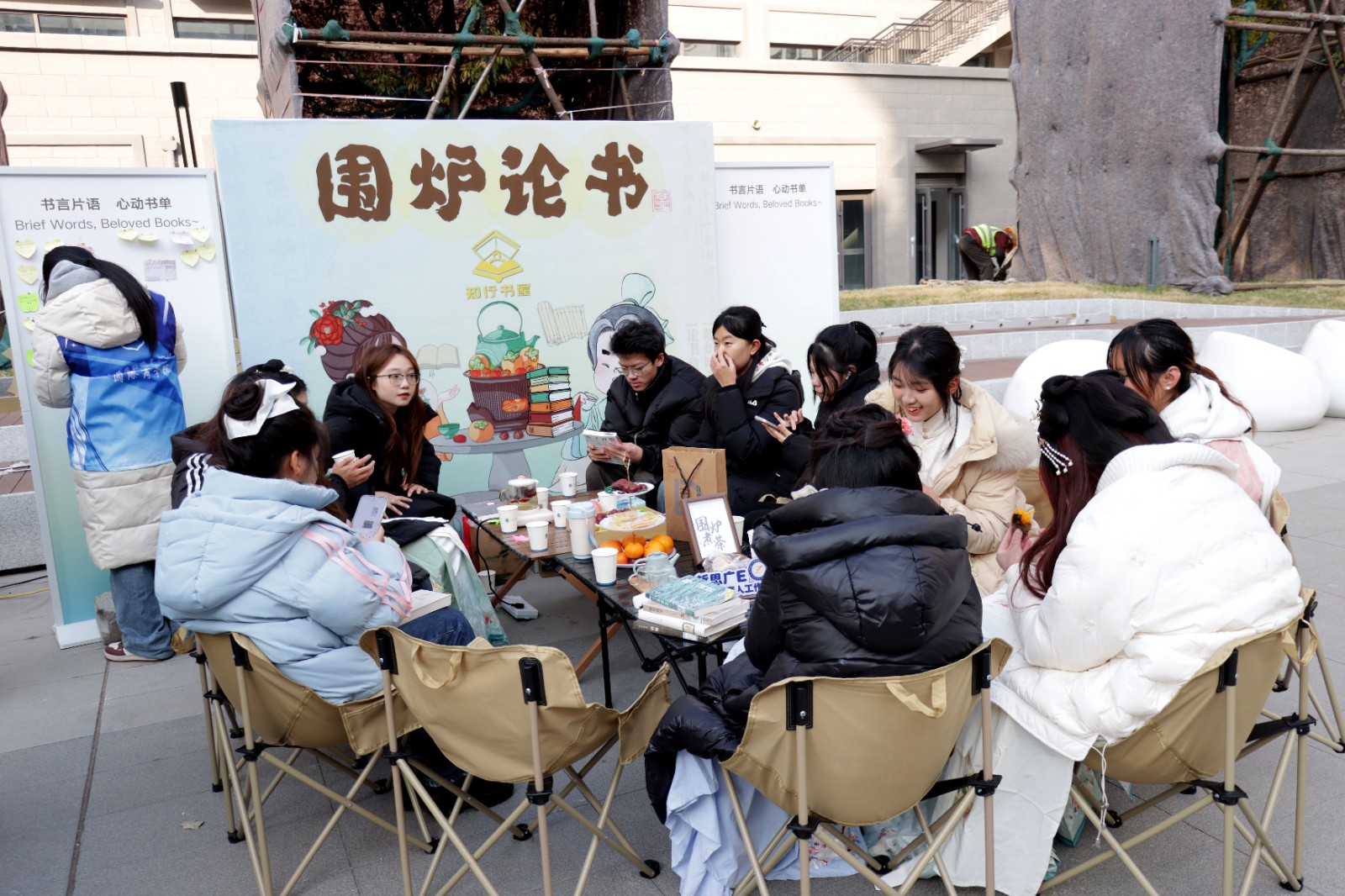 “冬日 VC补给站”乡村振兴助农区展销甜橙、苹果等农产品,供应红枣茶、烤地瓜等暖冬好物,助力乡村特色产业推广;冬季宿舍好物推荐区汇集拖鞋、护手霜、自热火锅等学生刚需商品,以特惠价打造便捷采购体验;“围炉论书”领读E直播读书体验区融合数字直播与文化分享,师生可在茶香中参与领读直播、感受阅读魅力;跨境好物区集结各国爆款零食,让师生沉浸式体验国际贸易场景、解锁异国风味;在直播带货综合区,整合各区域特色商品,由学生主播分时段开展直播推广,实现线上线下联动营销。