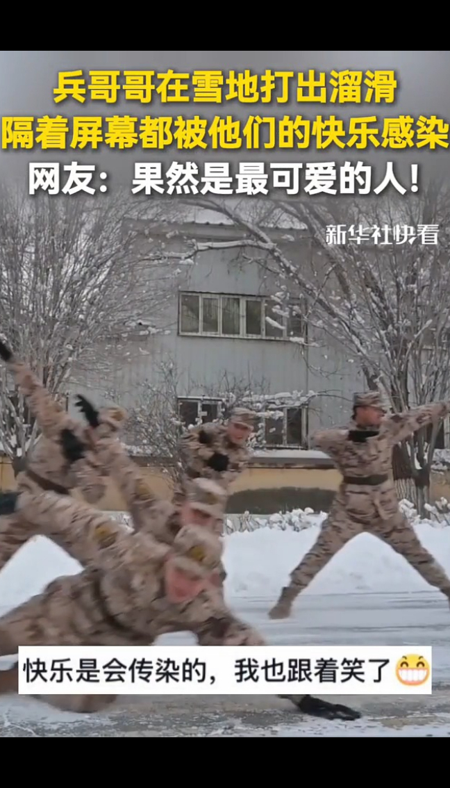 兵哥哥在雪地打出溜滑,隔着屏幕都被他们的快乐感染~网友:果然是最可爱的人!