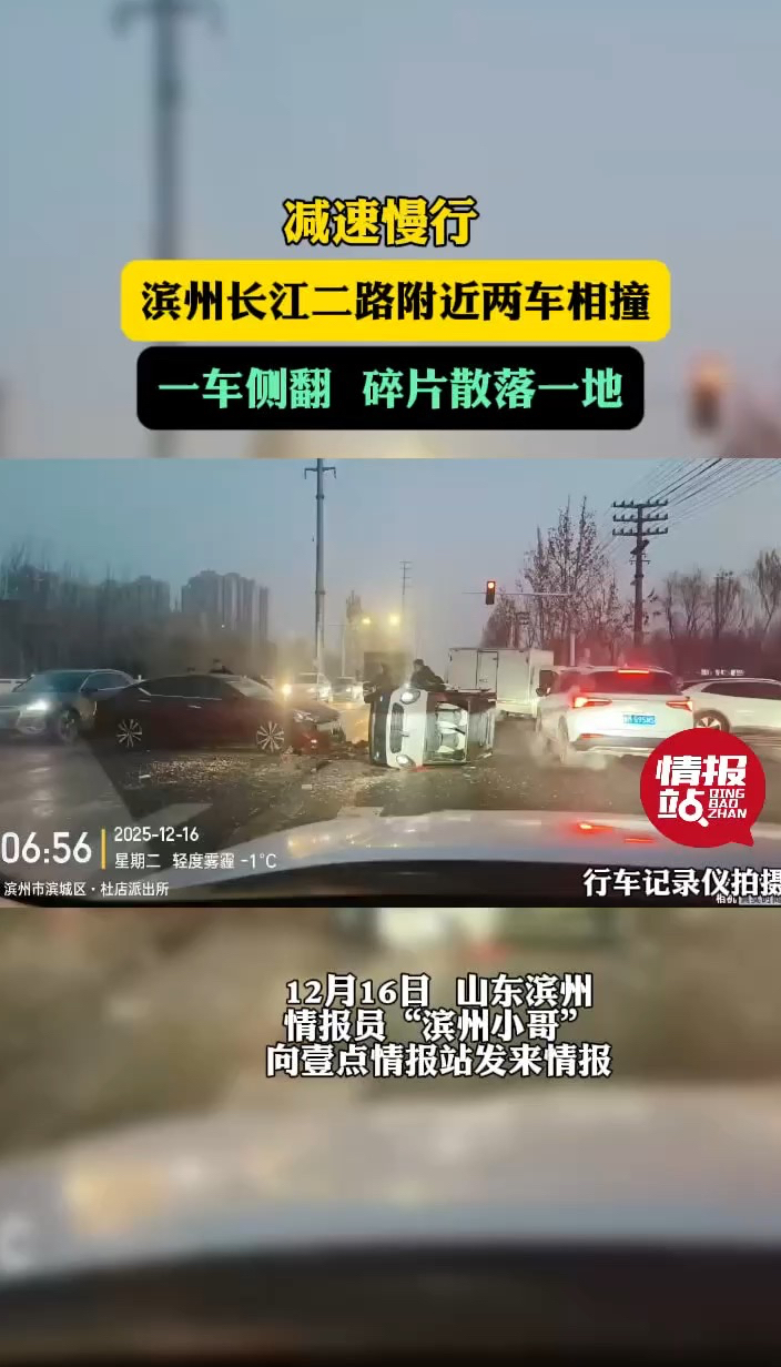 情报站|清晨滨州长江二路两车相撞,一车侧翻一车保险杠脱落 10:03 大众报业·齐鲁壹点 微信扫码扫码下载客户端12月16日,情报员“滨州小哥”向壹点情报站发来情报,今天早上6点50分左右,滨州长江二路与渤海二十一路发生交通事故,一红色轿车与白色小车相撞,红车车头保险杠受损严重,白色小车侧翻在一旁。“天刚蒙蒙亮,早上路过时看到的,具体事故发生时间不详,现场一辆车侧翻,地上碎片散落一地,希望没有人员受伤。”情报员说。