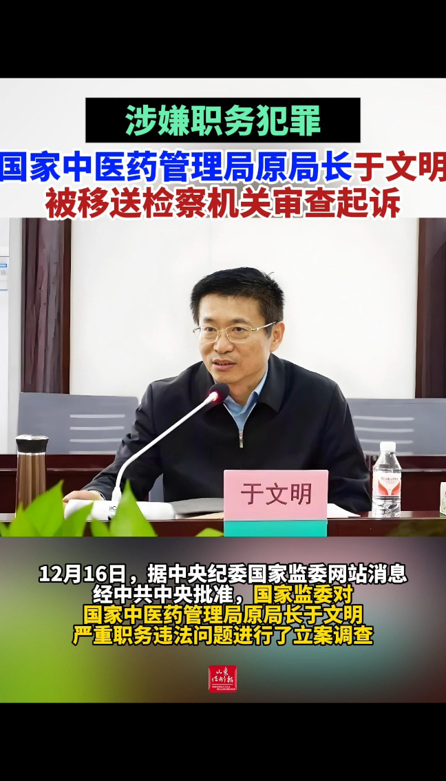 12月16日,据中央纪委国家监委网站消息,经中共中央批准,国家监委对国家中医药管理局原局长于文明严重职务违法问题进行了立案调查。