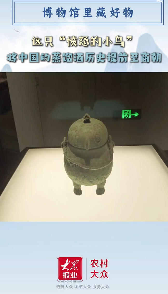博物馆里藏好物 | 这只“愤怒的小鸟”,将中国的蒸馏酒历史提前至商朝大众新闻·农村大众 14:01原创这只外形呆萌,神似“愤怒的小鸟”的青铜器,官方名字叫铜鸮卣,它将我国发现蒸馏酒的年代提前到了商时期。(大众新闻·农村大众记者 衣春悦)