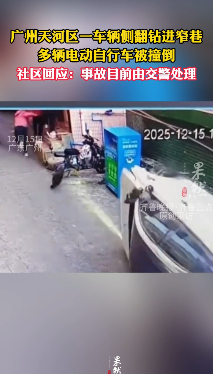 果然视频|广州一小车失控侧翻冲进巷子,社区:交警正处理