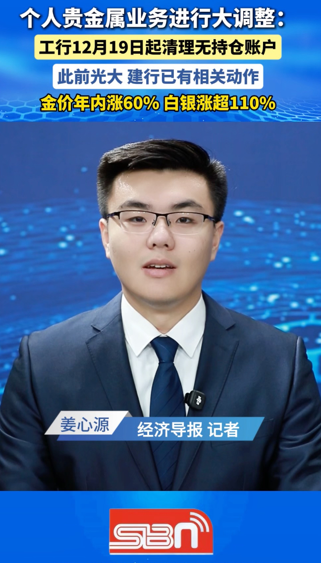 个人贵金属业务进行大调整:工行12月19日起清理无持仓账户,此前光大、建行已有相关动作,金价年内涨60%、白银涨超110%