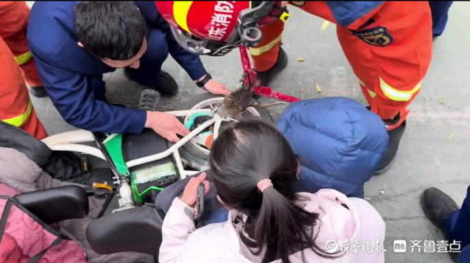 果然视频|男孩不慎脚卡电动自行车后轮处,消防员破拆施救齐鲁晚报·齐鲁壹点客户端 昨天17:43原创近日,济南,一男孩不慎脚卡电动自行车后轮处。接到求助,济南消防英雄山路救援站立即到场破拆,及时帮男孩脱困,并用消防车将其送往医院救治。 (齐鲁晚报·齐鲁壹点记者 尉伟 通讯员 褚志行)