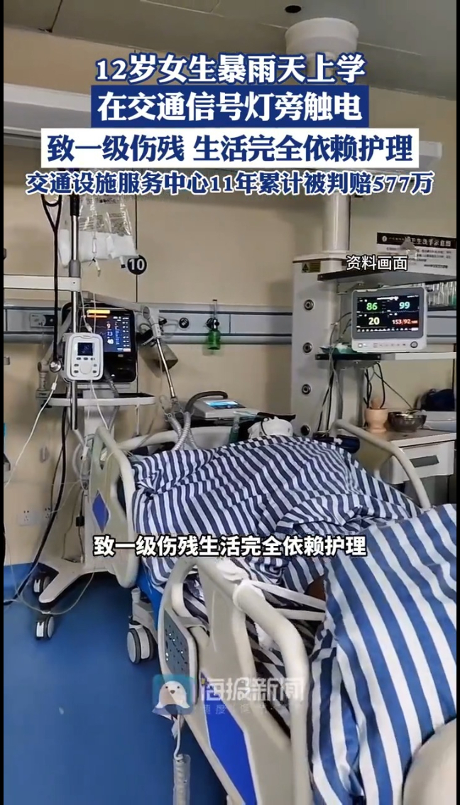 12岁女生暴雨天在信号灯旁触电,致一级伤残生活完全依赖护理,11年累计获交通设施方赔偿577万