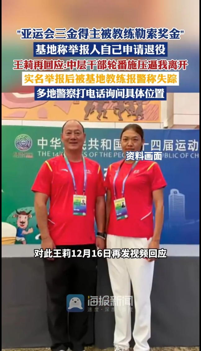 主播说 | “亚运会三金得主被教练勒索奖金”,基地称举报人自己申请退役,王莉再回应