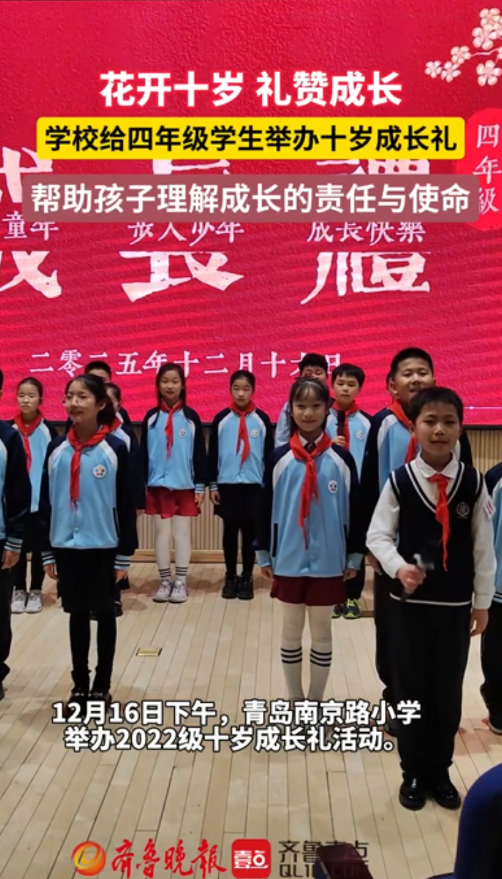 果然视频丨感恩与责任并行!青岛这所小学为学生举办十岁成长礼齐鲁晚报·齐鲁壹点客户端 10:39原创12月16日,青岛南京路小学为四年级学生举办了一场别开生面的十岁成长礼。在家长们的共同参与下,孩子们回顾了自己的成长足迹,在庄严而温馨的活动中,感知成长的意义,学会感恩,承担责任。 齐鲁晚报·齐鲁壹点 李珍梅
