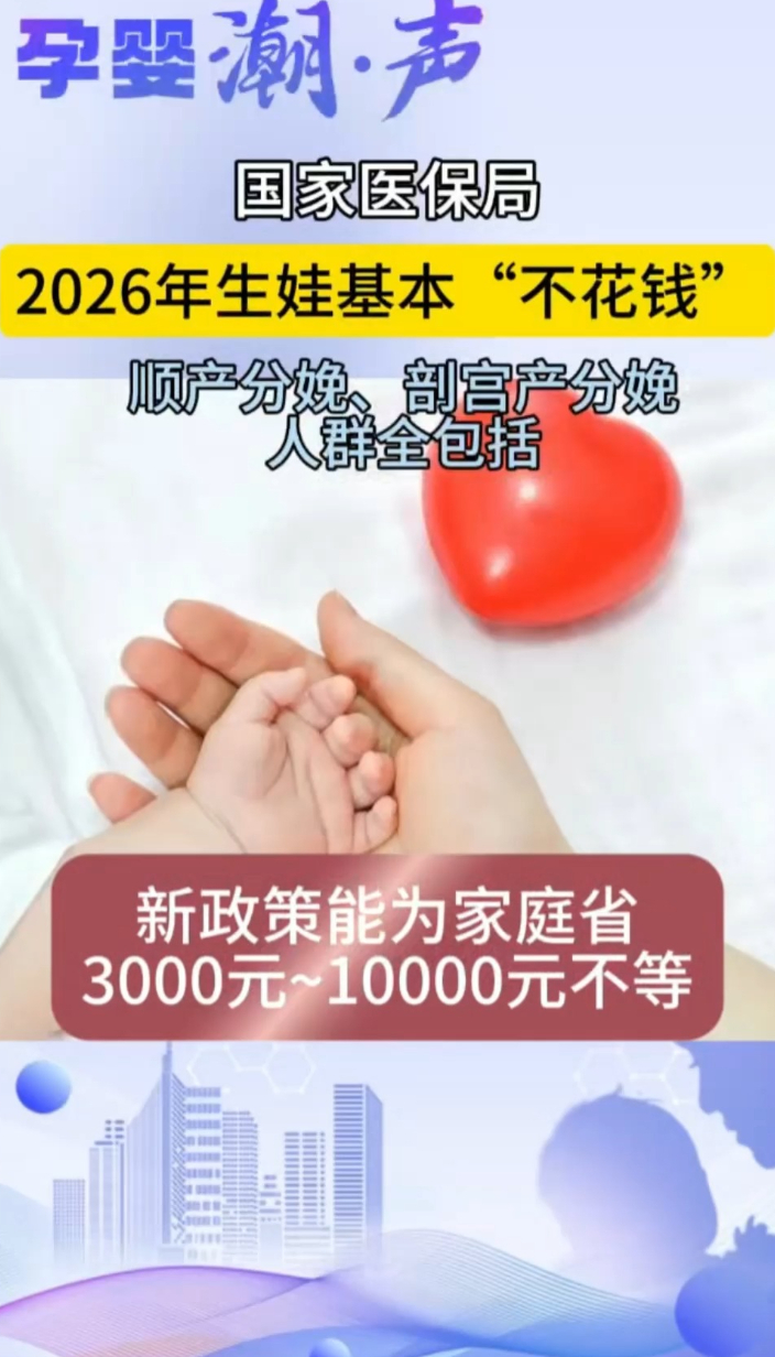 孕婴潮·声|2026年生娃,个人基本“不花钱”大众报业·齐鲁壹点 12-17国家医保局消息,近日,全国医疗保障工作会议在北京召开。会议要求,2026年,要积极适应人口发展战略,推动生育保险和长期护理保险发展。合理提升产前检查医疗费用保障水平,力争全国基本实现政策范围内分娩个人“无自付”。(齐鲁晚报·齐鲁壹点 徐田田)