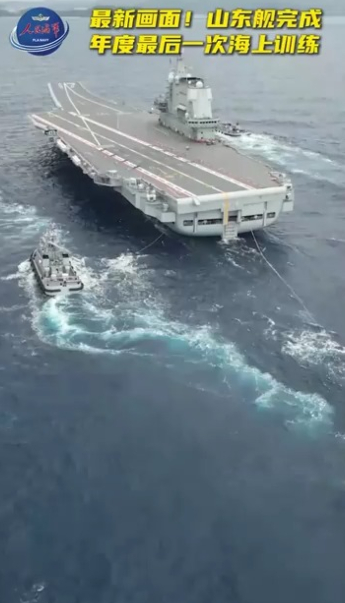 日前,刚刚完成年度最后一次海上训练任务的中国海军山东舰,顺利返回海南三亚某军港。 (人民海军)