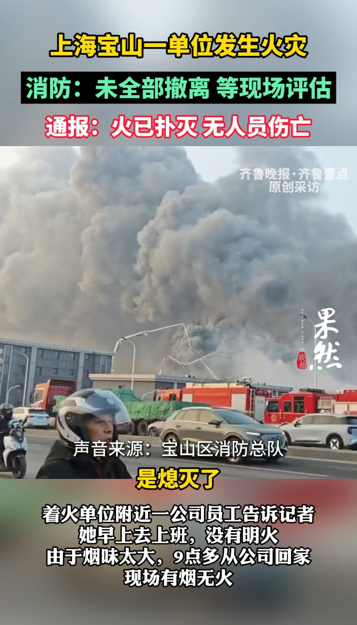 果然视频|上海宝山一单位发生火灾,通报:火已扑灭,无人员伤亡