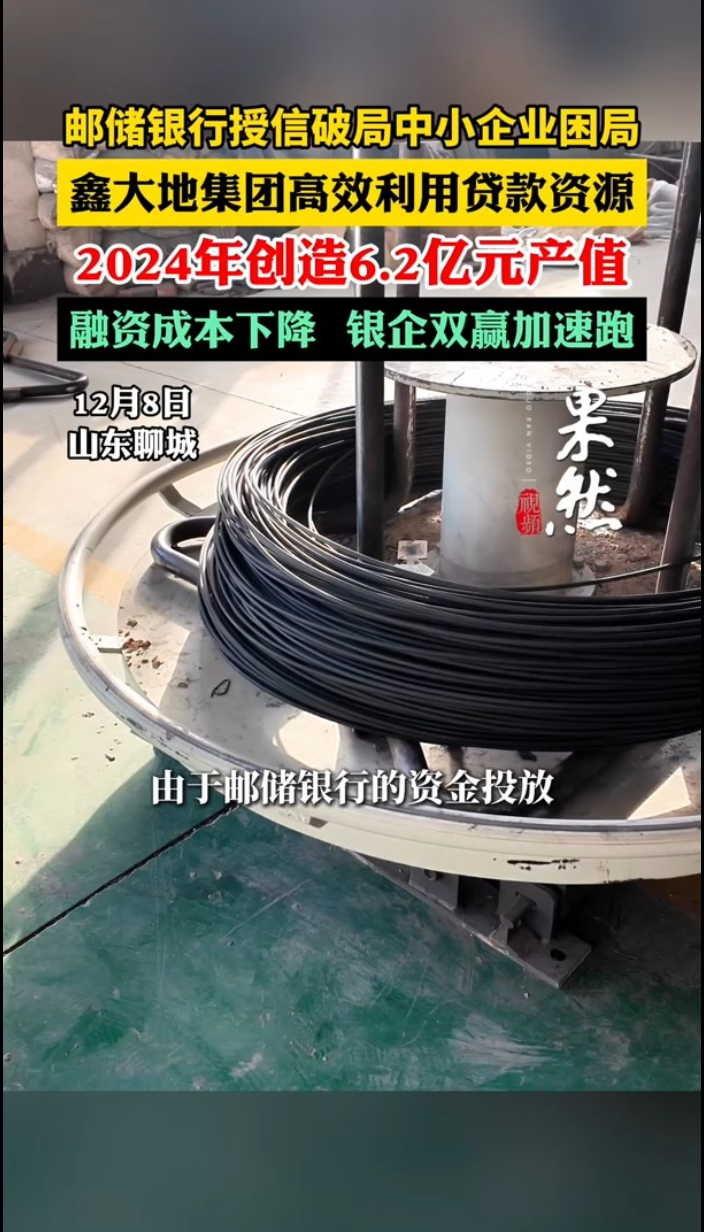 山东鑫大地控股集团有限公司财务经理马仲波表示,山东鑫大地控股集团有限公司主要经营混凝土用预应力钢丝和工业用弹簧钢丝。2024年,山东鑫大地控股集团有限公司年产值达到6.2亿元。2022年起,邮储银行开始为山东鑫大地控股集团有限公司进行授信,并发放流动资金贷款。邮储银行的资金投放,有效降低了公司的融资成本,有力促进了企业高速高效发展,实现了银企互利共赢的良好局面。(齐鲁晚报·齐鲁壹点 国晓宁‘)