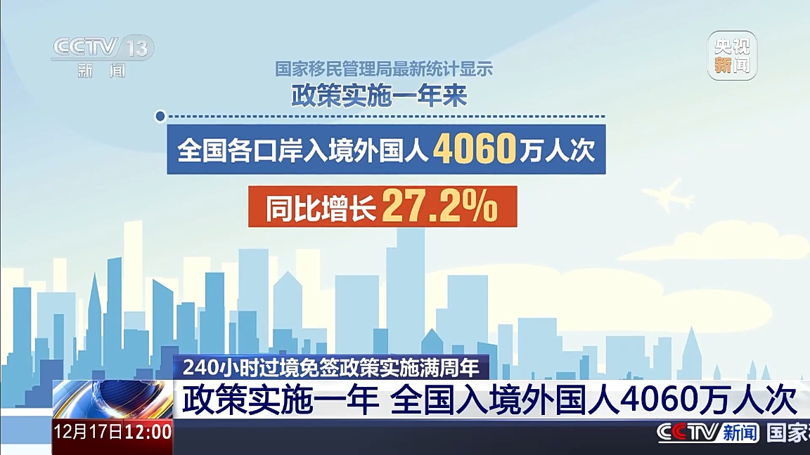 视频丨畅游240小时 外国游客深度解锁“宝藏中国”央视新闻客户端 12-172024年12月17日,我国240小时过境免签政策正式实施,今天已满一周年。这个覆盖55个适用国家、我国65个开放口岸、覆盖24个省份的重大举措,为外籍旅客开启了便捷入境中国的全新通道。