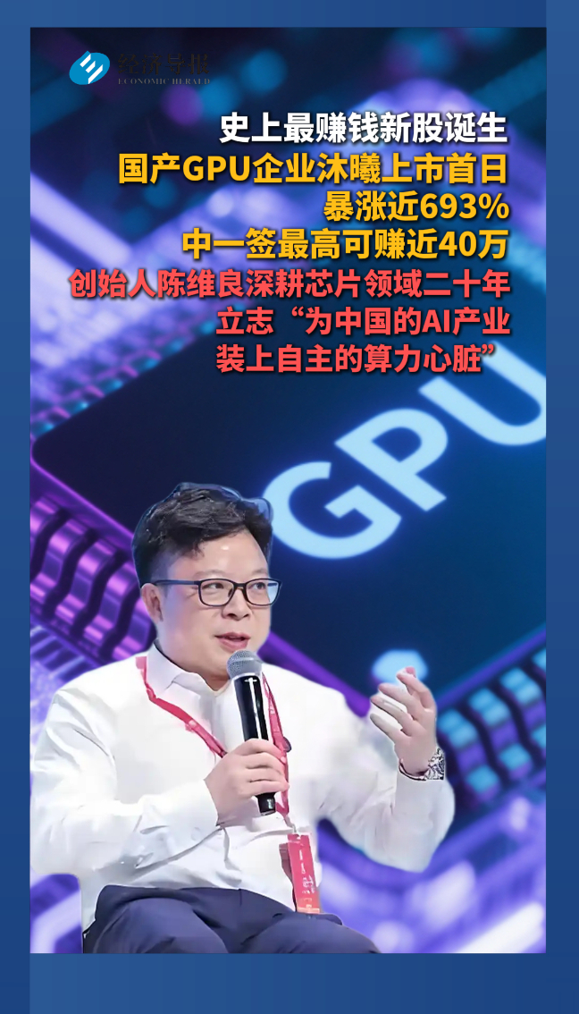 史上最赚钱新股诞生 国产GPU企业沐曦上市首日暴涨近693% 中一签最高可赚近40万