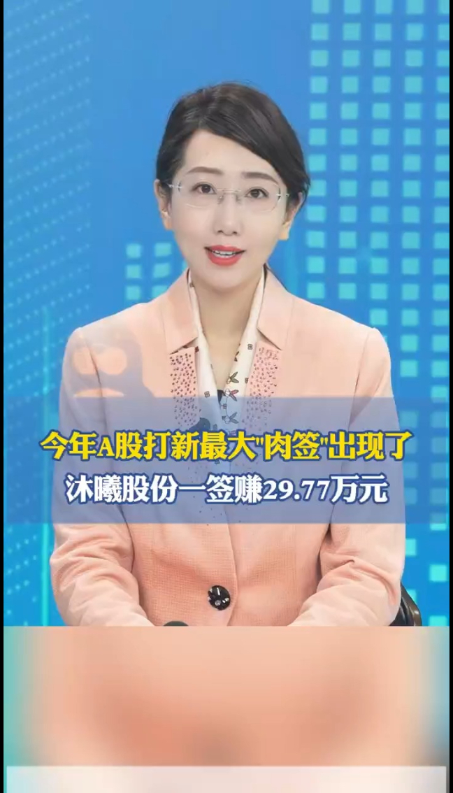 主播说丨今年A股打新最大“肉签”出现了 沐曦股份一签赚29.77万元 昨天10:07 原创大众新闻·海报新闻 微信扫码扫码下载客户端今年A股打新最大“肉签”出现了沐曦股份一签赚29.77万元人工智能GPU公司沐曦(mu xi)股份今日在科创板上市,因公司目前尚未盈利,自上市之日起将纳入科创成长层。该股开盘价700元,开盘涨幅为568.83%,以开盘价计算,中一签赚29.77万元。恭喜中签的股民!(海报新闻编辑黄晓荣 孙梦媛 潘雯)
