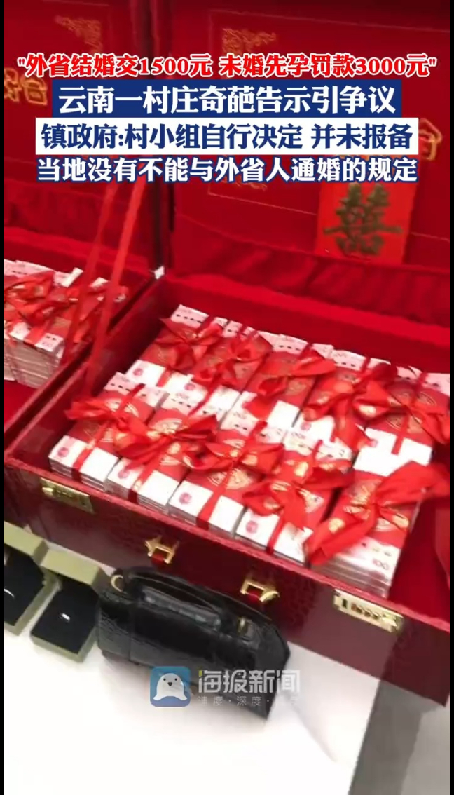 主播说丨“外省结婚交1500元,未婚先孕罚款3000元” ,云南一村庄奇葩告示引争议
