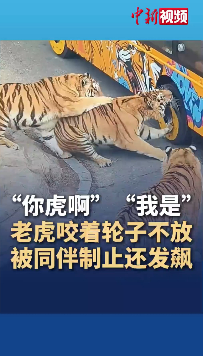 “你虎啊”“我是”老虎咬着轮子不放被同伴制止还发飙