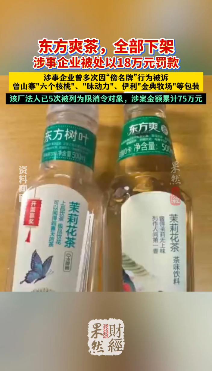 果然财经 |山寨版“东方树叶” 全部下架,涉事企业被罚齐鲁晚报·齐鲁壹点客户端 昨天19:04原创据新京报报道,此前,有多位消费者表示曾购买过“东方爽茶”“东方元甄”等产品,且以为它就是“东方树叶”,因此上当受骗。时隔数月,媒体回访发现,报道涉及的山寨产品已全部下架,涉事企业也被处以18万元罚款。