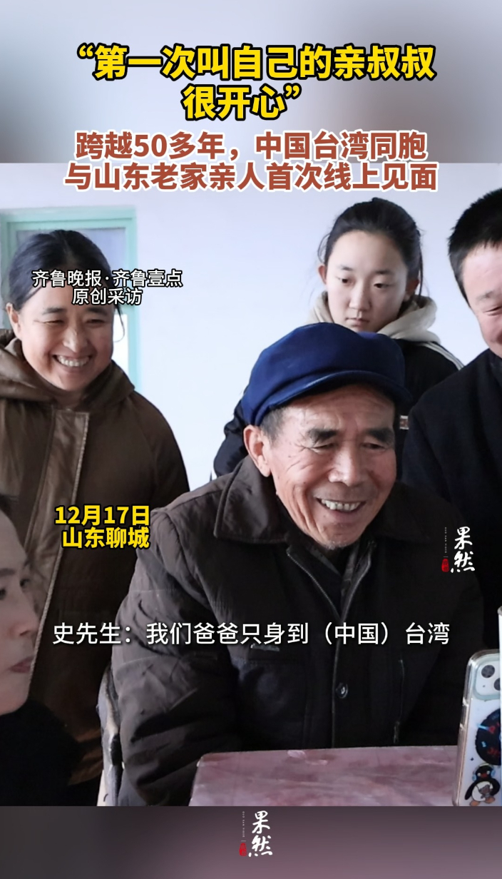 台北来信|“第一次叫自己的亲叔叔,很开心” 昨天20:23 原创齐鲁晚报·齐鲁壹点客户端 微信扫码扫码下载客户端这一声“叔叔”,这一场“相见”,横跨了五十载光阴与一道浅浅的海峡。壹点公益帮助台湾同胞寻亲,在记者的帮助下,一场等待了半个世纪的“云见面”,连起了隔海相望的血脉。(齐鲁晚报·齐鲁壹点 杜春娜 王倩 李梦瑶)