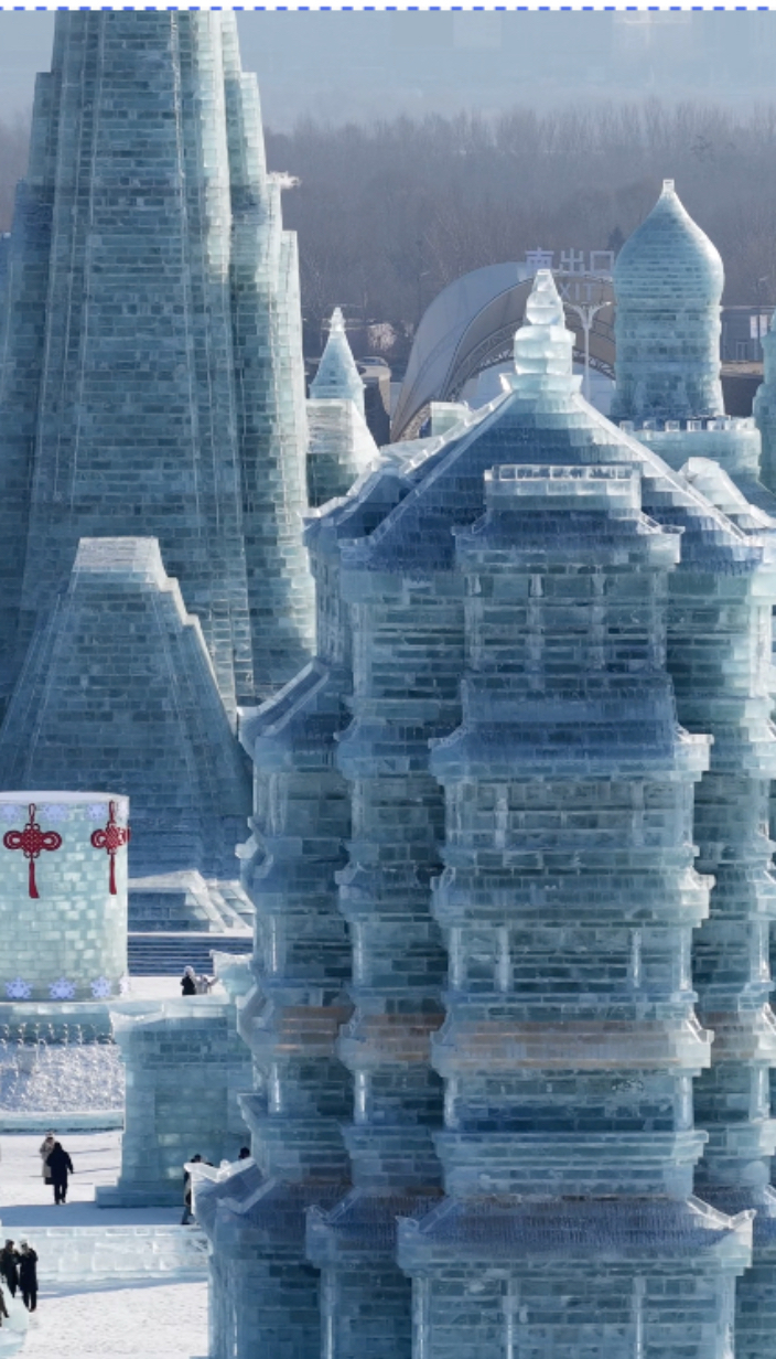 近日,冰雕黄鹤楼惊艳亮相哈尔滨冰雪大世界。网友:这真不是AI?(人民日报)