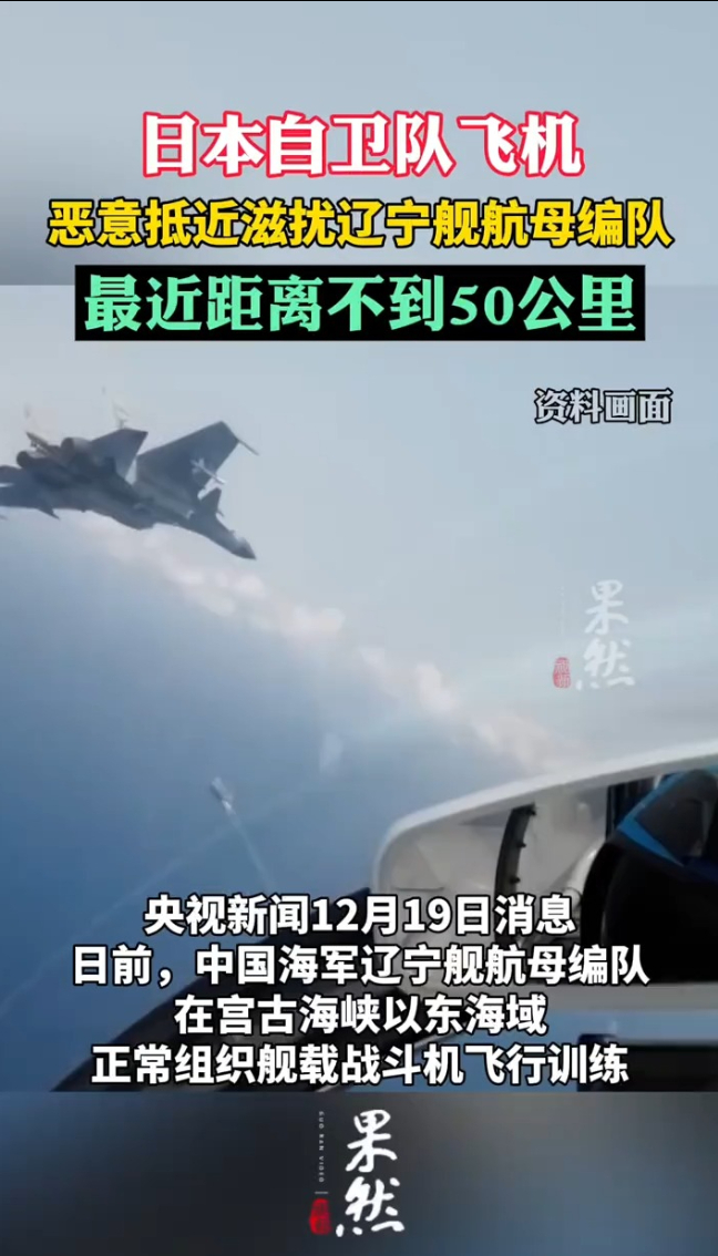 日本自卫队飞机恶意抵近滋扰辽宁舰航母编队,最近距离不到50公里