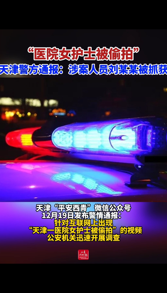 “医院女护士被偷拍” 天津警方通报:涉案人员刘某某被抓获 昨天21:07 现场“平安西青”微信公众号 微信扫码扫码下载客户端天津“平安西青”微信公众号12月19日发布警情通报:针对互联网上出现“天津一医院女护士被偷拍”的视频,公安机关迅速开展调查。经深入工作,2025年12月18日晚,公安机关将涉案人员刘某某(男,23岁,该医院护士)抓获。刘某某对多次在护士办公室内实施偷拍行为并上传网络的事实供认不讳。目前,案件正在依法办理。