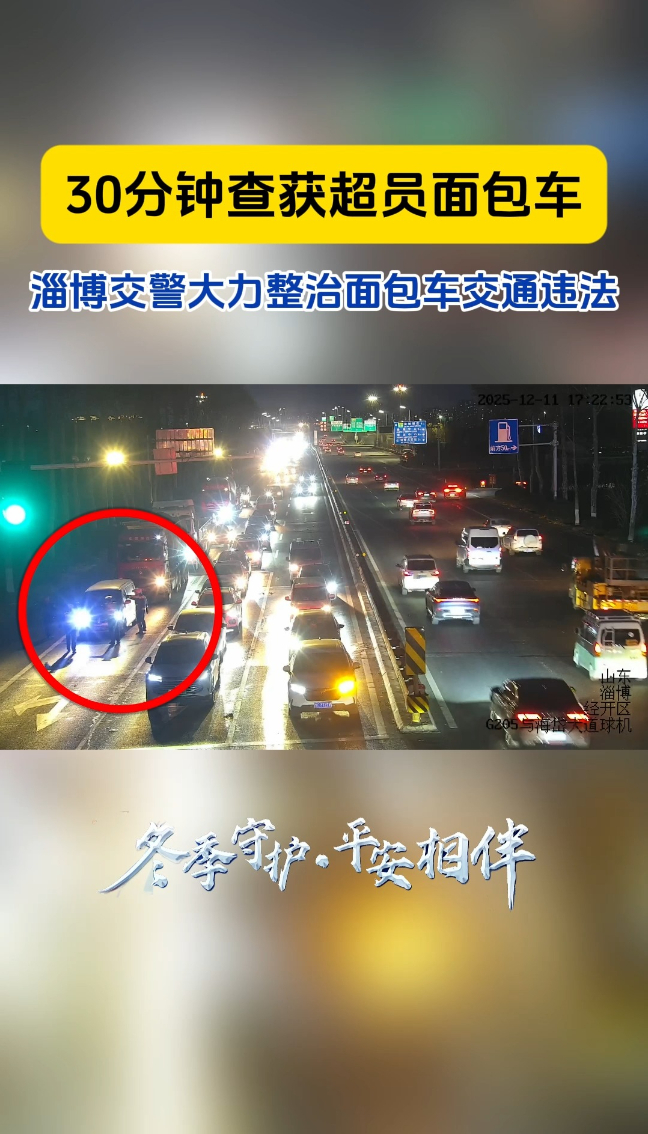 12月19日,淄博市公安局交通管理支队发布违法警示视频。12月11日17时,在张店一处工地附近,一辆鲁C号牌超员面包车被张店交警当场查获,从发现到查获仅用30分钟。这是淄博交警科技赋能天眼助力查获的第98辆违法面包车。经现场核实,该车核载9人,实载13人,超员44%。自百日行动及冬季守护行动开展以来,淄博交警通过车辆轨迹视频巡查,共研判布控拼车包车超员嫌疑面包车123辆,全力预防道路交通事故,维护群众出行平安。