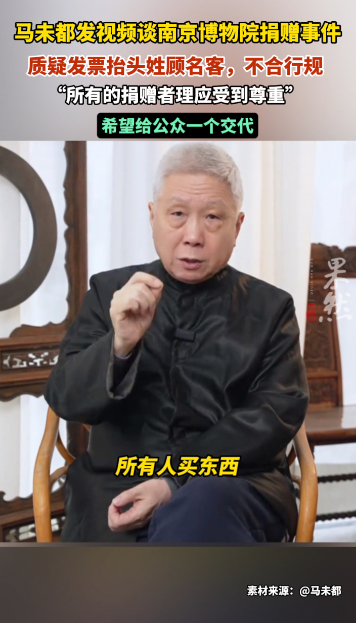 果然视频|马未都发视频谈南博捐赠事件,质疑发票抬头不合行规齐鲁晚报·齐鲁壹点客户端 昨天19:01原创近日,近现代收藏大家庞莱臣后人捐给南京博物院的明代仇英《江南春》图卷,被指出现在一场拍卖中,引发广泛关注。12月19日,知名收藏家、文化学者马未都发视频谈及此事件,认为发票抬头写的是“顾客”,而不是有名有姓的人,此举不合行规。马未都还表示,所有的捐赠者理应受到尊重。 (齐鲁晚报·齐鲁壹点记者 路董萌 胡玲玲)
