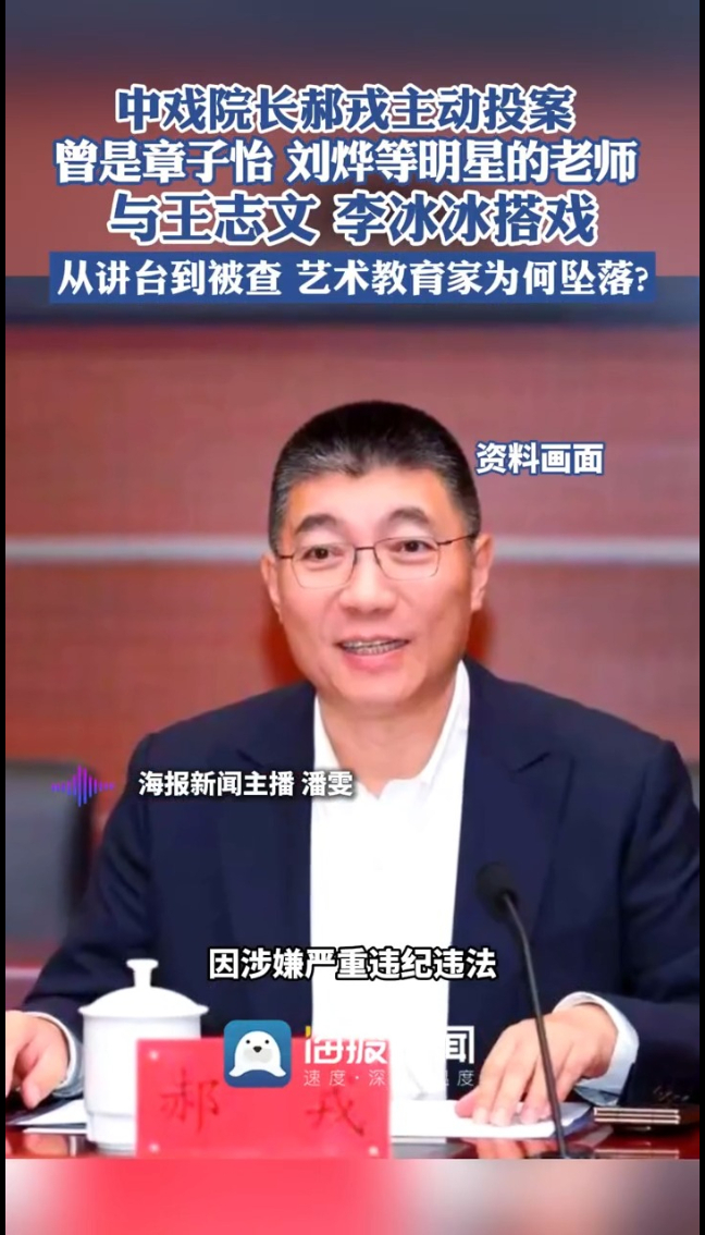 中央戏剧学院院长郝戎,因涉嫌严重违纪违法,主动投案接受调查。