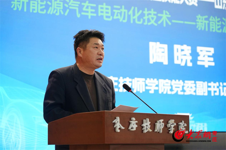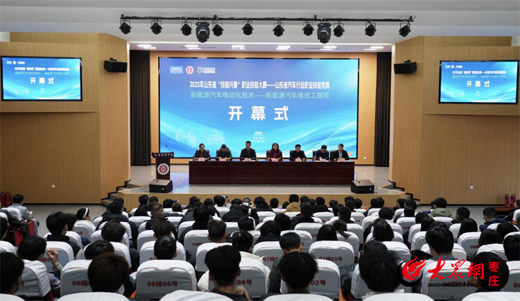 12月15日,山东省“技能兴鲁”职业技能大赛--山东省汽车行业职业技能竞赛 新能源汽车电动化技术—新能源汽车维修工项目在枣庄技师学院开赛。山东省汽车行业协会秘书长郭金娜,学院党委副书记、院长陶晓军,市人社局副局长尚文宇,市人社局职业能力建设科科长高会干,大赛裁判长、德州职业技术学院副教授艾锋出席开幕式,大赛裁判员、领队、全体参赛选手参加开幕式。开幕式由学院党委委员尹旭彬主持。