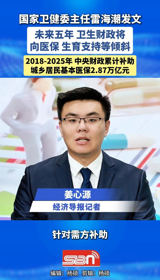 国家卫健委主任雷海潮发文,未来五年,卫生财政将向医保、生育支持等方面倾斜