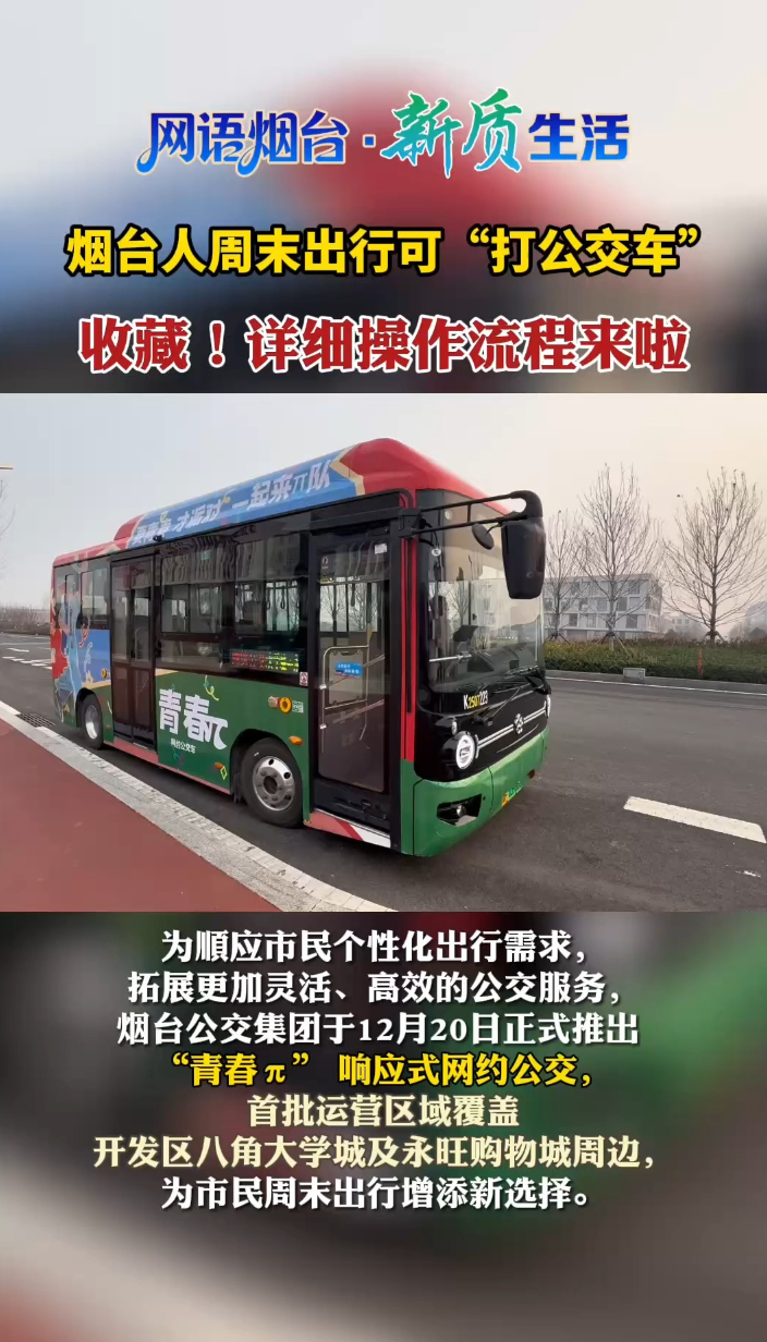果然视频|烟台人周末出行可“打公交车”!操作流程来啦齐鲁晚报·齐鲁壹点客户端 15:29原创12月20日,烟台首条网约公交正式上线。首批运营区域覆盖开发区八角大学城及永旺购物城周边,为市民周末出行增添新选择。详细操作流程来了,赶紧收藏起来。(齐鲁晚报·齐鲁壹点 于洋 通讯员 王柯然)