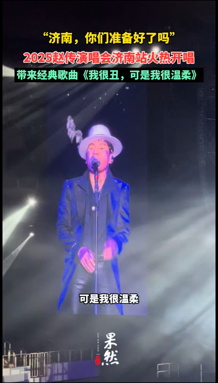 果然视频|赵传济南演唱会带来经典歌曲《我很丑,可是我很温柔》齐鲁晚报·齐鲁壹点客户端 昨天20:15原创赵传“给所有知道我名字的人”2025巡回演唱会济南站于12月20日19时在济南奥体中心体育馆开唱。演出以一首经典歌曲《我很丑,可是我很温柔》开场,点燃观众热情。(齐鲁晚报·齐鲁壹点 王贝艺)